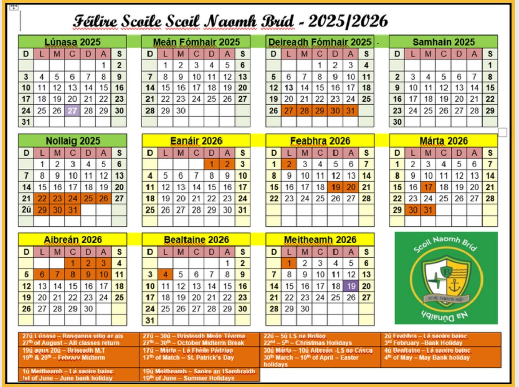 Féilire na bliana 2025/2026